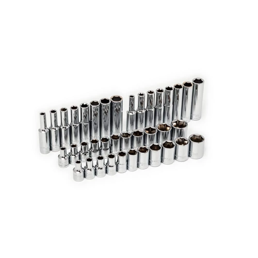 - Shallow and deep sae/metric 6 point full polish chrome sockets with stamped size markings for easy socket identification