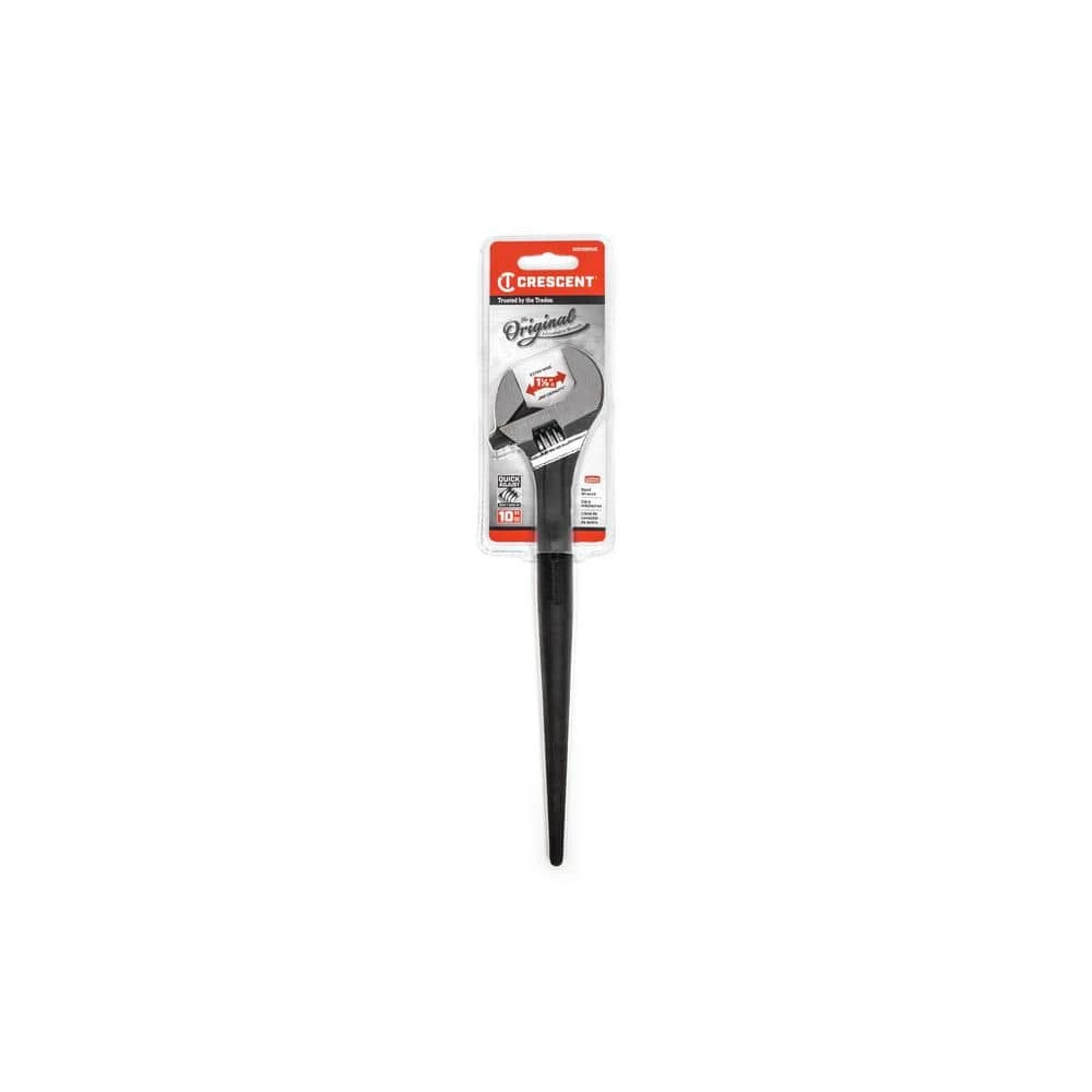 - 10 in. adjustable wrench with a tapered tang for aligning mating parts