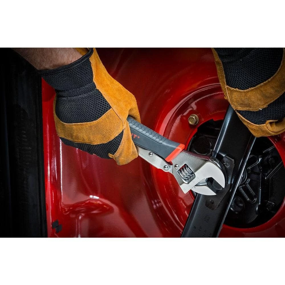 - The versatility of an adjustable wrench and the gripping power of a locking plier