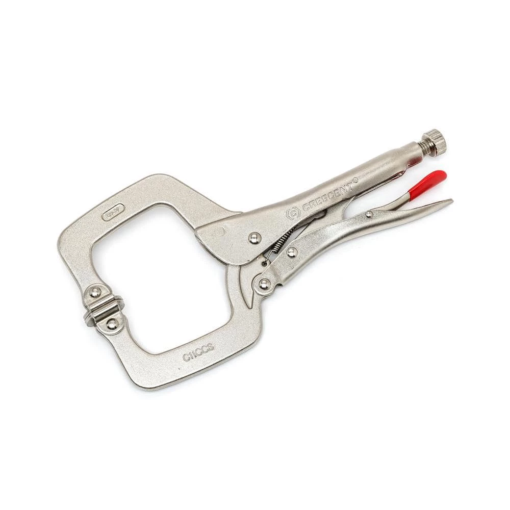 Crescent locking in. C in. Clamp is faster and easier to use than standard clamp in most situations. Their compound action locking handles are designed for a powerful non-slip locking grip. Aggressive grip pattern added to tightening knurls.
