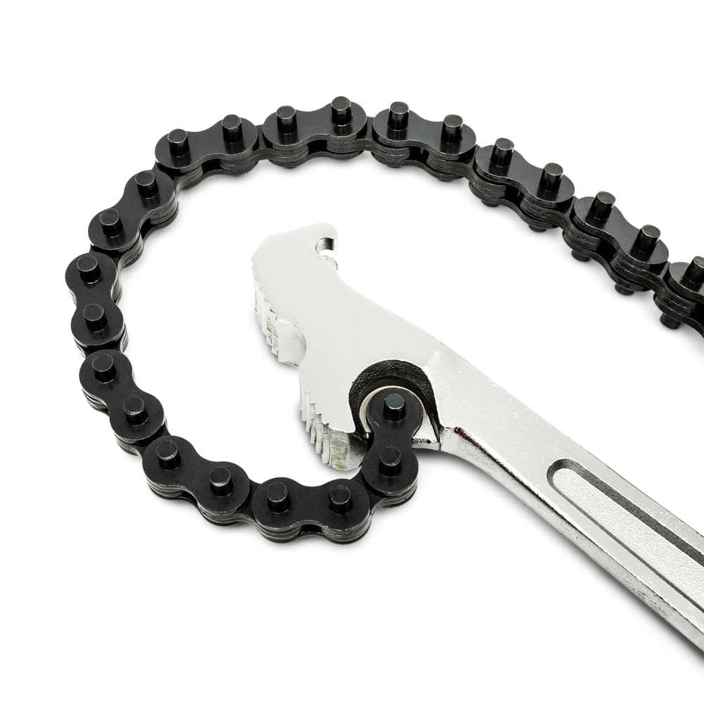 Crescent 12 in. Chain Wrench is designed for confined areas when ordinary pipe wrenches will not fit. Its double-action allows use in either direction. There are concave-cut teeth for improved gripping. You can easily re-sharpen the chain wrench if needed.
