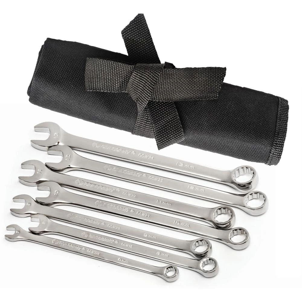 - Includes seven 12-point metric combination wrenches plus a tool roll for storage and organization