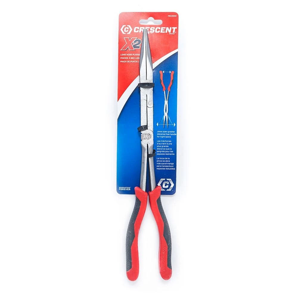 The X2 Crescent pliers are an innovative approach to pliers. We designed Crescent X2 Long Reach Pliers with double joints so that the jaws can open a greater distance than the handles for improved access in tight spots. These long-nose pliers extend where others pliers cannot go.