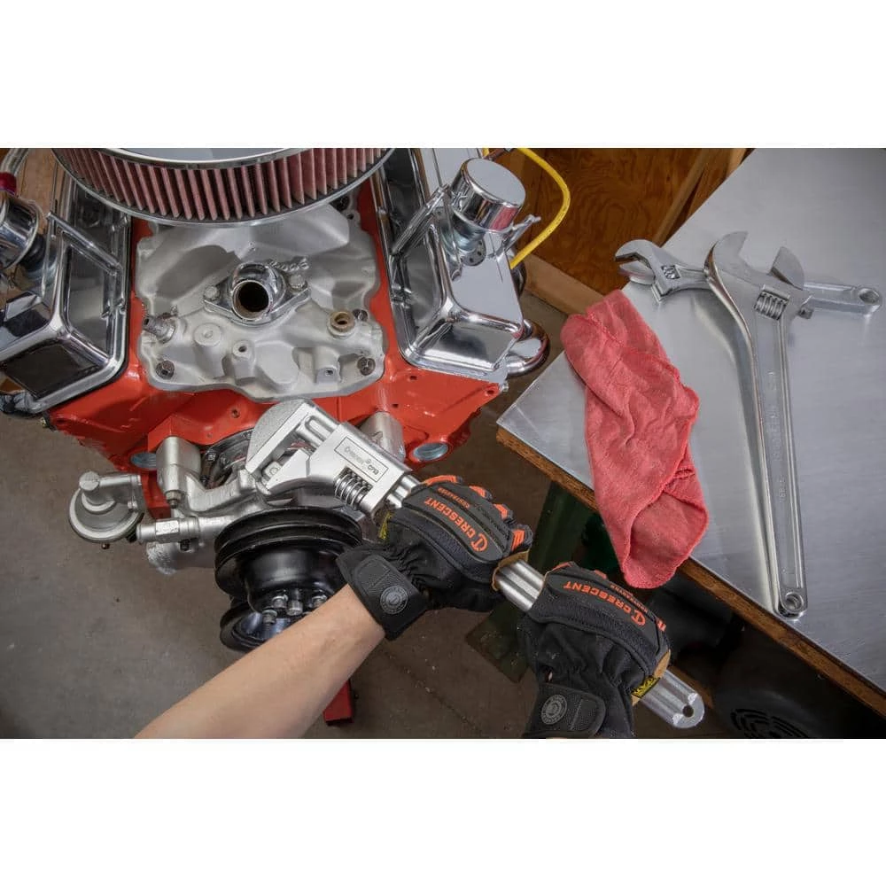 The Crescent 18 in. Automotive Sliding Wrench is used for automotive and general purpose. It has a sliding steel jaw increase grip capacity. This sliding wrench has a chrome plated finish.