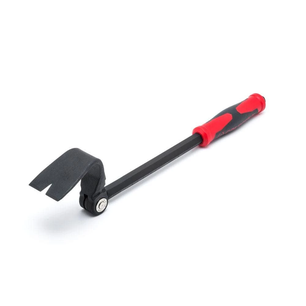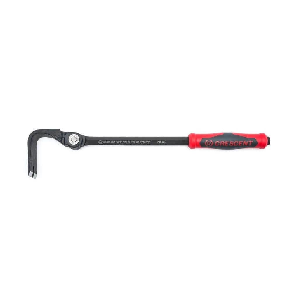 The Crescent Indexing Flat Pry Bar features a 90 degree flat head for better access and wider support when prying against surfaces. The head indexes over 180 degree and locks into 15 different positions for unparalleled access and utility. The raised, reinforced wedge on the back of the indexing head provides a solid striking surface to hit for loosening and penetration. It is completed with a durable 2-tone dual material grip that provides comfort, control and added safety during use or transport around the jobsite.