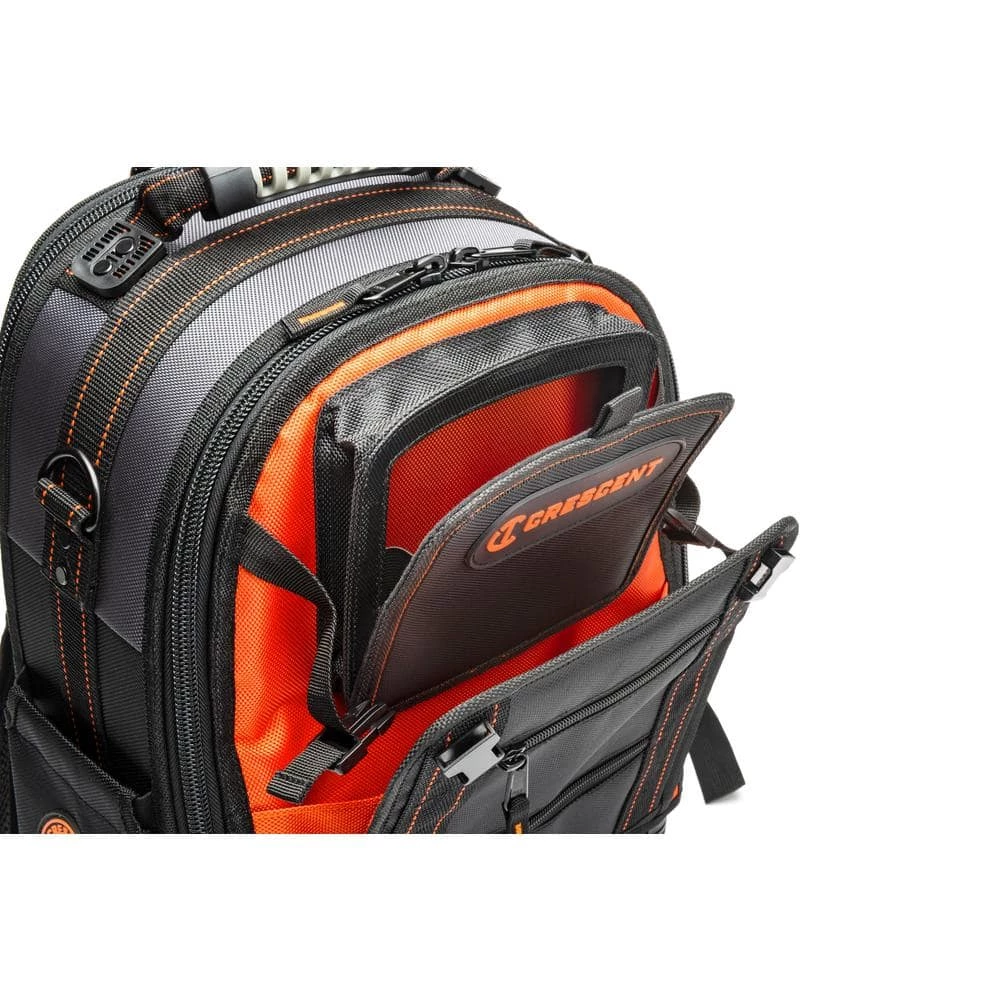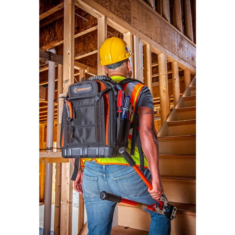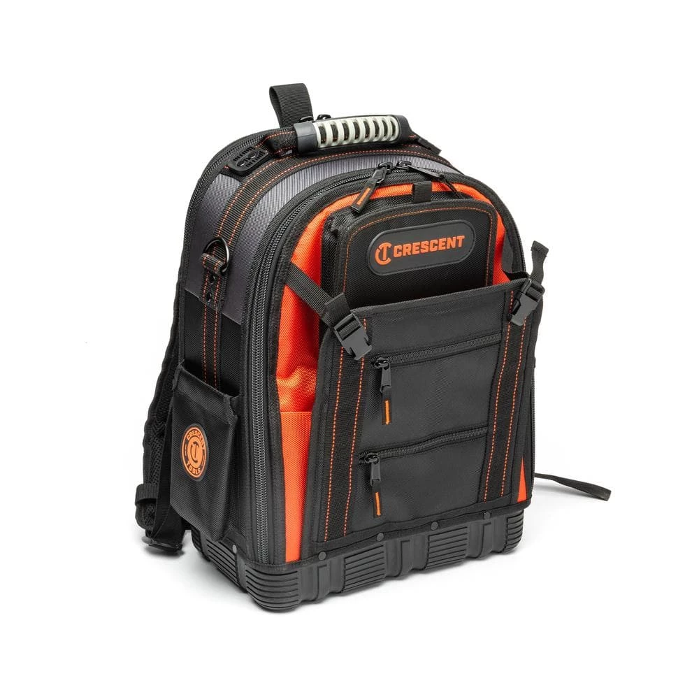 Introducing the Crescent tradesman backpack. This bag features a hard polypropylene base that provides the durability you need to keep your tools safe and dry. Every zipper on this bag comes with a 3-year guarantee. These bags are built to take the abuse of everyday jobsite use.