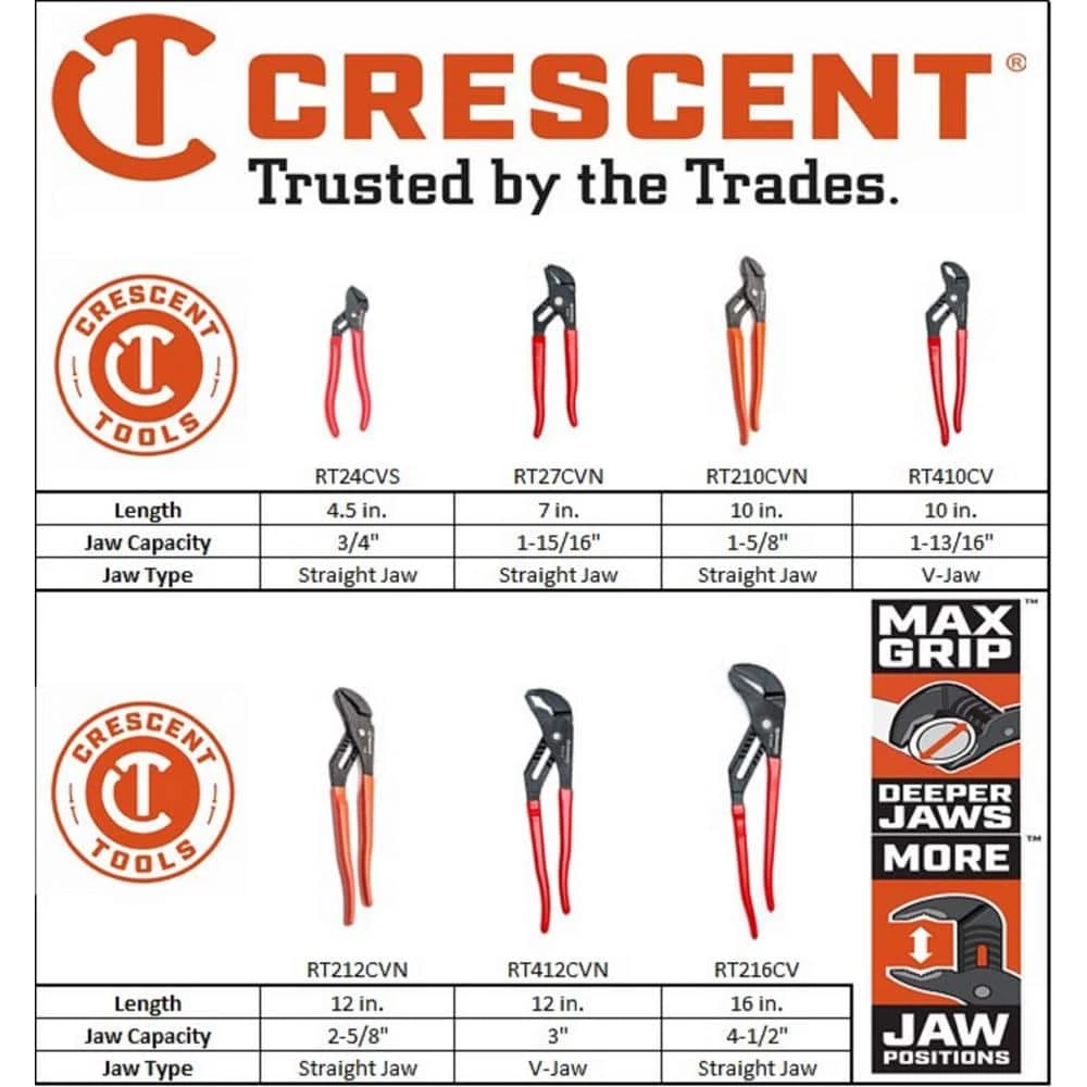 The Crescent plier line has tongue and groove, slip joint, and solid joint styles all in the most common sizes. They are made from alloy steel providing the strength and durability needed for professional, industrial, and at home uses. The tongue and groove and solid joint styles both have a non-slip grip allowing for user safety and hand comfort. The CRESCENT line of pliers are made for gripping, twisting, cutting, stripping, or bending wire and cable in professional, industrial, and at home uses.