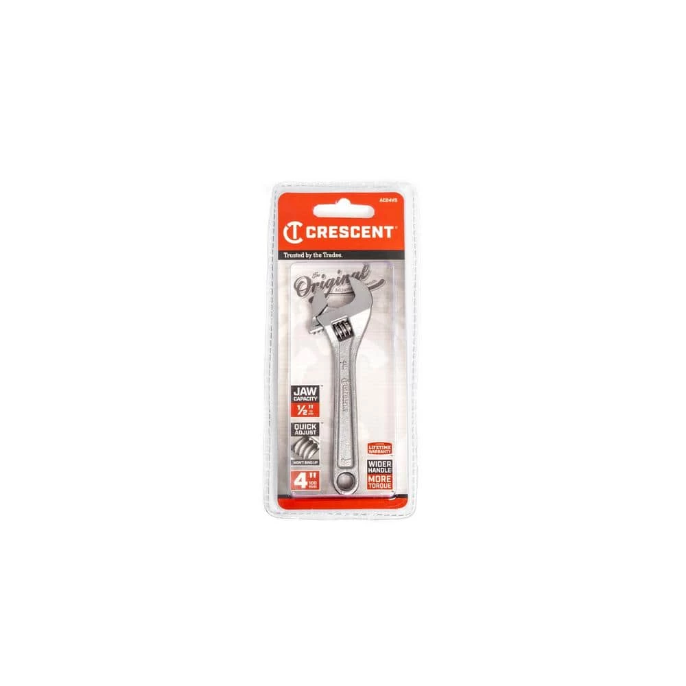 The World Famous Crescent Brand 4 in. adjustable wrench has larger knurl for easier adjustment and tighter jaw fit. A hex jaw design which reduces slippage and tightly grips bolt. Wider handle to improve comfort and reduces fatigue.