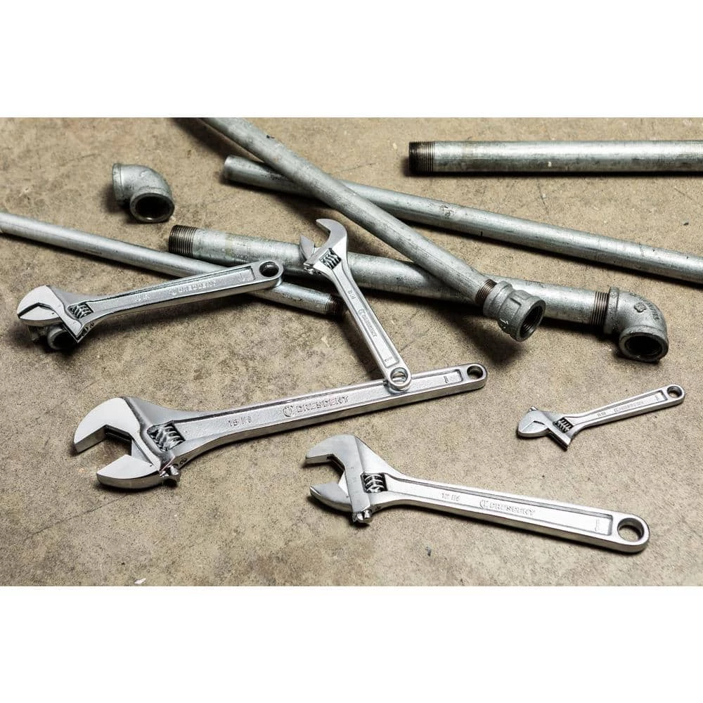 - Includes 5 adjustable wrenches: 6 in., 8 in., 10 in., 12 in. and 15 in.