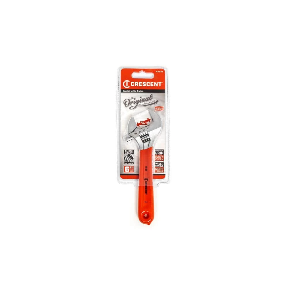 Crescent Adjustable Cushion Grip Wrenches feature a durable, comfortable, molded rubber cushion on the wide handle. A large knurl allows for easy adjustment and a tight-fitting hex jaw design reduces slippage and tightly grips the fastener for solid, secure operation. The corrosion-resistant chrome finish helps prevent rust.