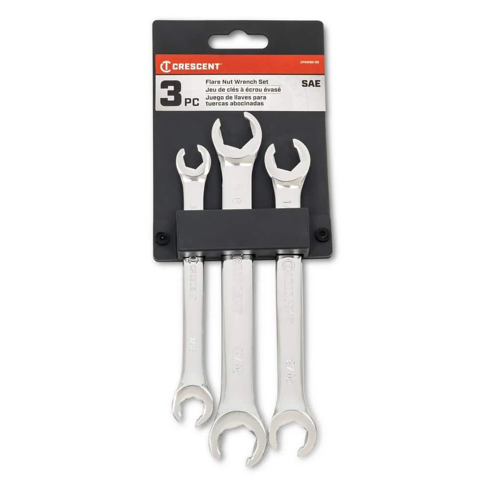 - Includes 3 flare nut wrenches with the following sizes 3/8 in. x 7/16 in., 1/2 in. x 9/16 in. and 5/8 in. x 11/16 in.
