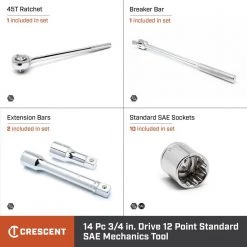 1/4 in. and 3/8 in. Drive 6-Point SAE/Metric Professional Tool Set (150-Piece) by Crescent