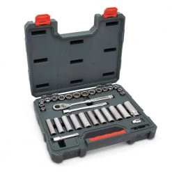 35-Piece 3/8 in. Drive 6 and 12 Point Stand ard and Deep SAE/Metric Mechanics Tool Set by Crescent