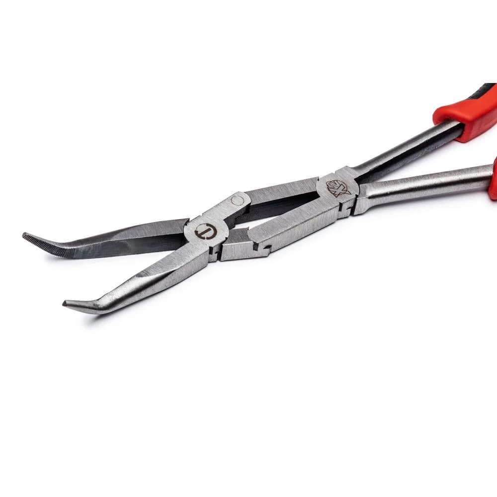 We designed Crescent X2 Long Reach Pliers with double joints so that the jaws can open a greater distance than the hand les for improved access in tight spots. Milled grooves in the tips grip fasteners and other objects tightly. These long-nose pliers extend where others pliers cannot go.